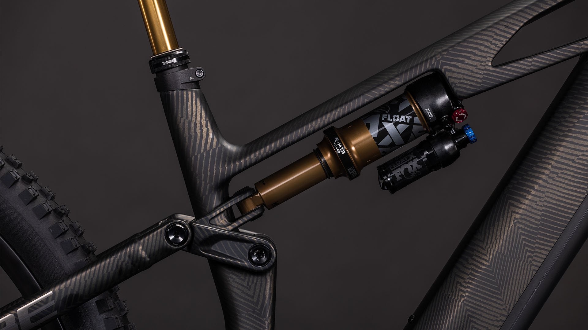 Suspensión Fox Factory (horquilla 36 Float Factory de 150 mm y amortiguador Float X Factory de 140 mm) para un comportamiento sensible y control total en los terrenos más técnicos.