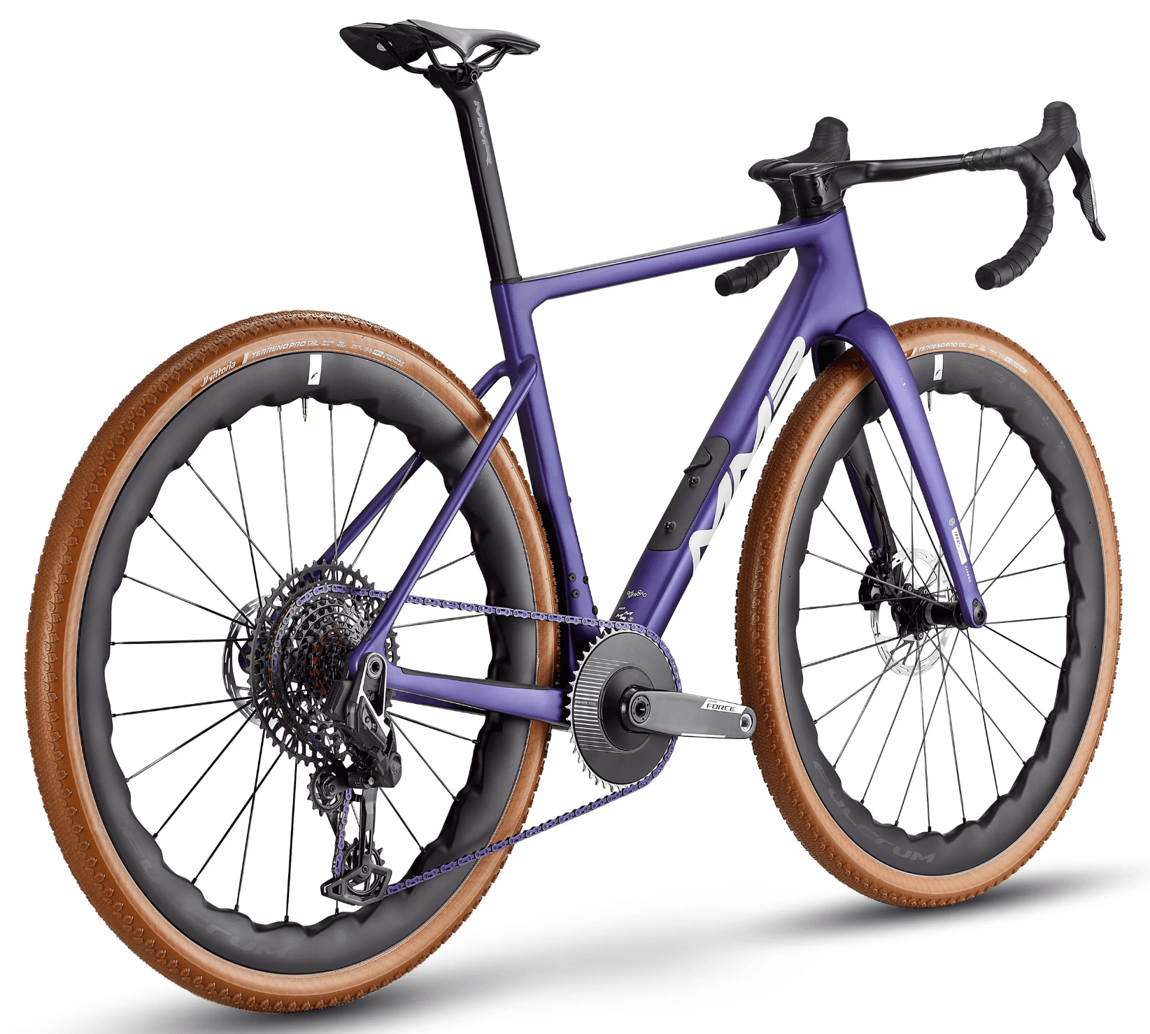 Combinada con frenos hidráulicos SRAM Force AXS E1 HRD, esta configuración garantiza control absoluto, potencia de frenado constante y una transmisión fiable incluso en las condiciones más exigentes.