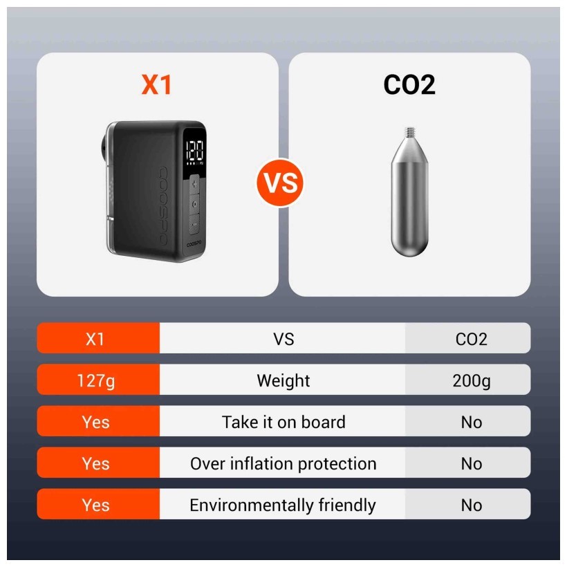 Gracias a su amplio rango de presión de hasta 120 PSI, su pantalla digital integrada y su batería de carga rápida USB-C, la AP-X1 te permite inflar con total control y sin esfuerzo, estés donde estés.