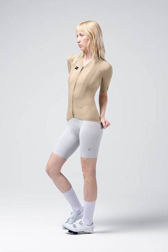 As mangas Aero, mais longas e sem costuras graças à tecnologia de bonding, criam uma superfície lisa que reduz o atrito e melhora a eficiência aerodinâmica. A cintura sem costuras diminui a pressão e aumenta o conforto, enquanto a banda elástica traseira assegura uma excelente estabilidade mesmo em posição de acoplamento.